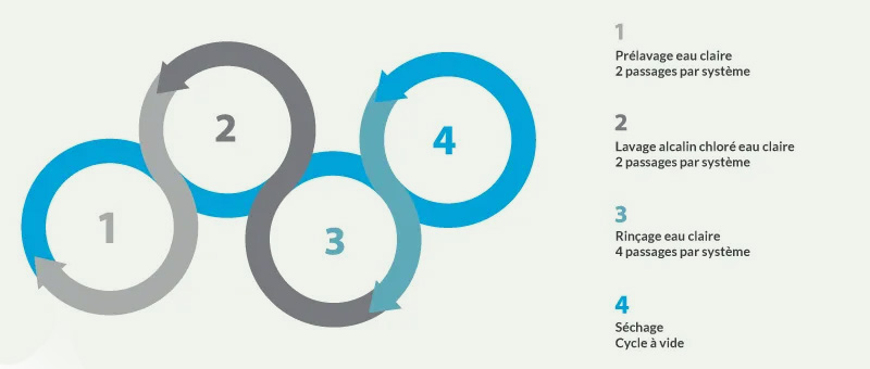 Lavage en eau perdue (programmation par automate GIBAIR) : Eau chaude + Alcalin chloré.